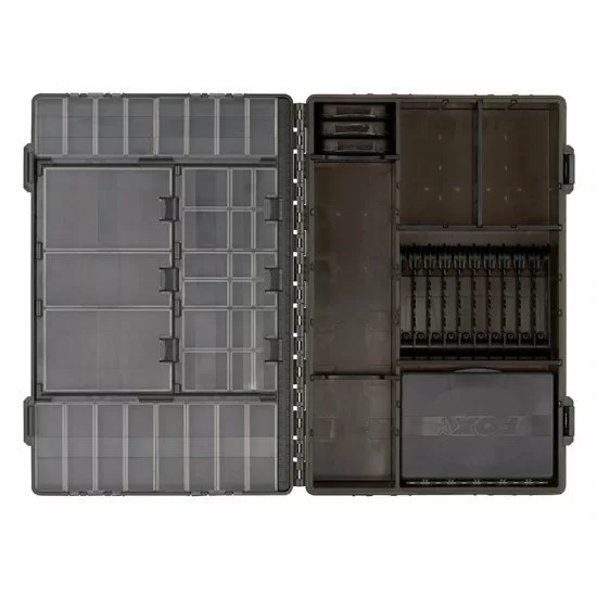 La nueva gama Fox Tackle Box ha combinado el legendario concepto Fox F-Box con la inspiración del mercado y muchas ideas nuevas. Con esto, la gama está completamente actualizada y vuelve a donde pertenece: a la vanguardia del diseño de cajas de aparejos. El uso de la tapa completa para el almacenamiento de aparejos finales maximiza la capacidad y mantiene la caja lo más compacta posible. La tapa grande tiene 37 compartimentos individuales, incluidas bisagras mejoradas y tapas transparentes en los compartimentos, para que se pueda ver el contenido. También se ha incluido una hoja de pegatinas para etiquetar el contenido para una rápida identificación.