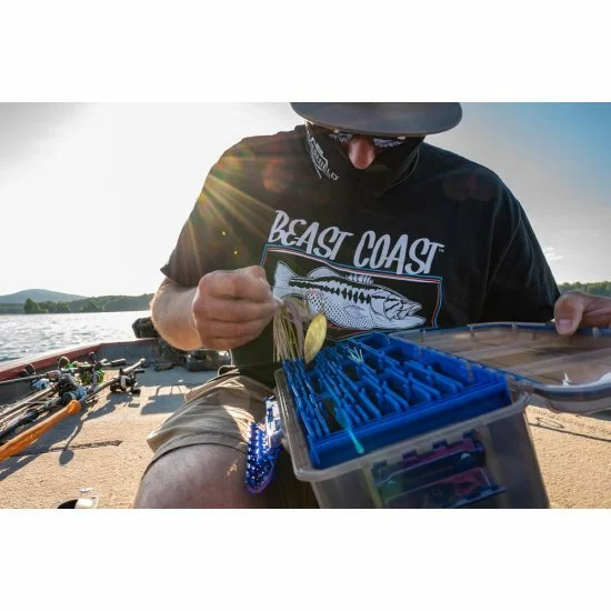 En el corazón de Blade Krate se encuentran las 21 carpetas de plástico anticorrosión con infusión de Zerust diseñadas para colgar 2 señuelos cada una a través de clips integrados. El Blade Krate tiene capacidad para 42 señuelos en un tamaño compacto que se adapta a bolsas de aparejos estándar y compartimentos de botes. El diseño simple y ergonómico de Blade Krate permite el ajuste para crear hasta 3 compartimentos de almacenamiento a granel cuando se retira una sección de carpetas para opciones de almacenamiento alternativas. La funcionalidad orientada al propósito de Blade Krate reorganiza convenientemente las prioridades del pescador: más tiempo pescando y menos molestias con un revoltijo de anzuelos y cebos.