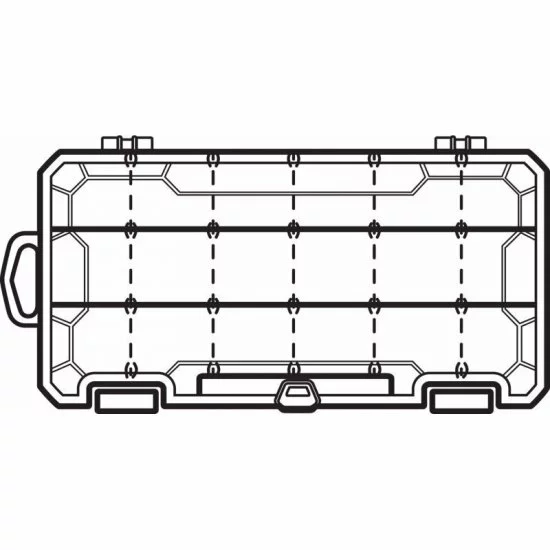 Diseño transparente para una fácil visualización de lo que hay dentro. 18 compartimentos para señuelos con 9 deflectores Zerust separados.