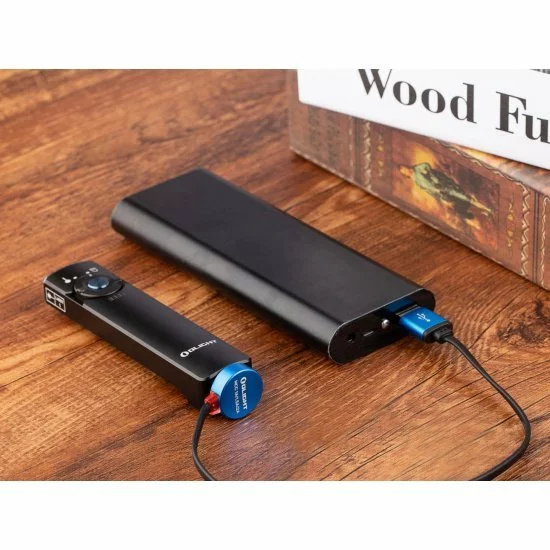 La carga es sencilla con el cable de carga magnético universal de Olight, que indica cuando la lámpara está llena. La parte posterior magnética también se puede utilizar para colgar la lámpara. El Arkfeld está equipado con una serie de características de seguridad: