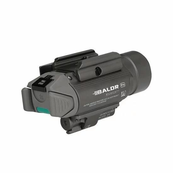 El Olight Baldr Pro Gunmetal Grey Limited Edition Green Laser es una lámpara de arma con láser verde. Este Baldr ha sido especialmente desarrollado para uso táctico para uso profesional, policial y militar. Esto se puede montar fácilmente en una pistola gracias a un práctico cierre rápido. Esta lámpara LED de alta potencia proporciona un haz de luz de un máximo de 1350 lúmenes. El láser verde (dispositivo de orientación) se puede utilizar tanto por separado como simultáneamente con la lámpara. El interruptor está ubicado en la parte posterior de la lámpara y se puede usar en ambos lados (uso para diestros y zurdos).