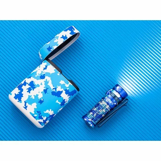 - Un hermoso anillo azul anodizado alrededor de la cabeza de la lámpara y el interruptor hacen que la lámpara sea inmediatamente reconocible como una Olight real.