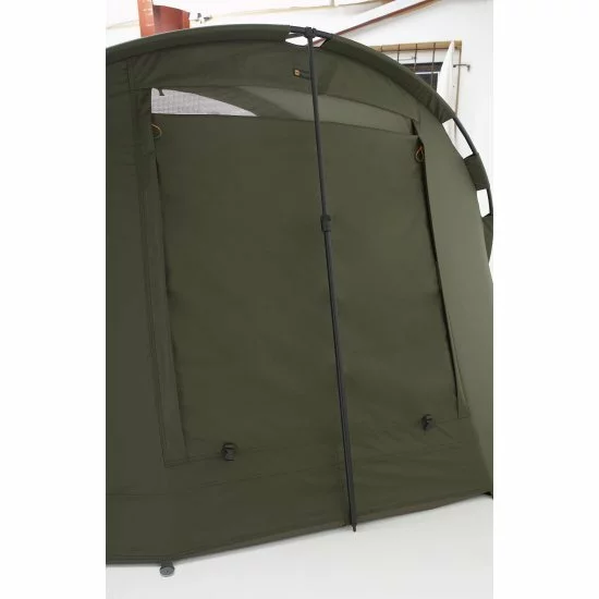 La nueva generación de Inspire Bivvys ha establecido estándares envidiables para la innovación y el diseño. La construcción de 2 costillas da como resultado un refugio ligero y fácil de montar. Ambas versiones tienen una sección de visera enrollable, perfecta para esas sesiones rápidas con buen tiempo donde no se requiere una protección de visera extensa. El sistema Pro-Vent se ha utilizado en todas partes. Una ventilación trasera grande y 2 ventilaciones laterales adicionales brindan la mejor ventilación de 360 grados de su clase. Esto maximiza el intercambio de aire, reduce la condensación y aumenta la observación y lo mantiene más fresco durante los meses más cálidos. El suelo resistente con cremallera Pro-Tect ayuda a evitar la entrada de insectos o agua y se asegura con cremalleras resistentes colocadas 10 cm por encima del nivel del suelo. El Inspire Bivvy presenta nuestro nuevo tejido Pro-Tex de última generación que es transpirable, liviano, extremadamente duradero e impermeable hasta 20,000 mm. El panel frontal removible tiene una puerta y ventanas de malla mozzy. El panel cuenta con puertas con cremallera doble, lo que permite la apertura del buzón y una mejor protección contra los elementos. La envoltura del condensador que viene con el Bivvy para 1 hombre y la envoltura completa que viene con el Bivvy para 2 personas están hechas a propósito de una tela impermeable y muy duradera 210D. Proporciona una cabeza hidrostática de 10.000 mm. Combinado con el tejido Pro-Tex de 20.000 mm, ofrece una eficiencia mucho mayor al permitir que la cápsula interna Bivvy respire de manera efectiva. Porque la transición del intercambio de aire se reduce en gran medida por el tejido 210D utilizado en las eslingas. Esto permite un intercambio de aire mucho más lento y progresivo. Lo que aísla dramáticamente el aire interior de la temperatura del aire exterior, creando una barrera de aislamiento superior. Este proceso reduce significativamente la acumulación de humedad y la condensación. Este sistema se puede optimizar aún más cuando se usa con el sistema Pro-Vent manteniendo las rejillas de ventilación abiertas y operativas durante los días cálidos y húmedos.